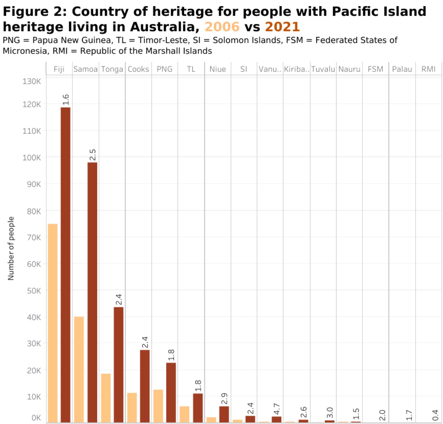 Last year, we tried to identify as accurately as possible the number of people with a Pacific Island heritage living in Australia counted in the 2006, 2011 and 2016 censuses. Now 2021 census data is available, and we can update our results.