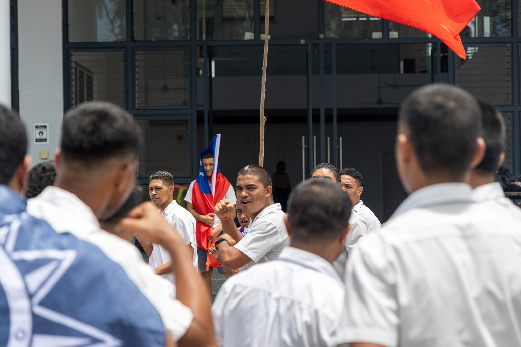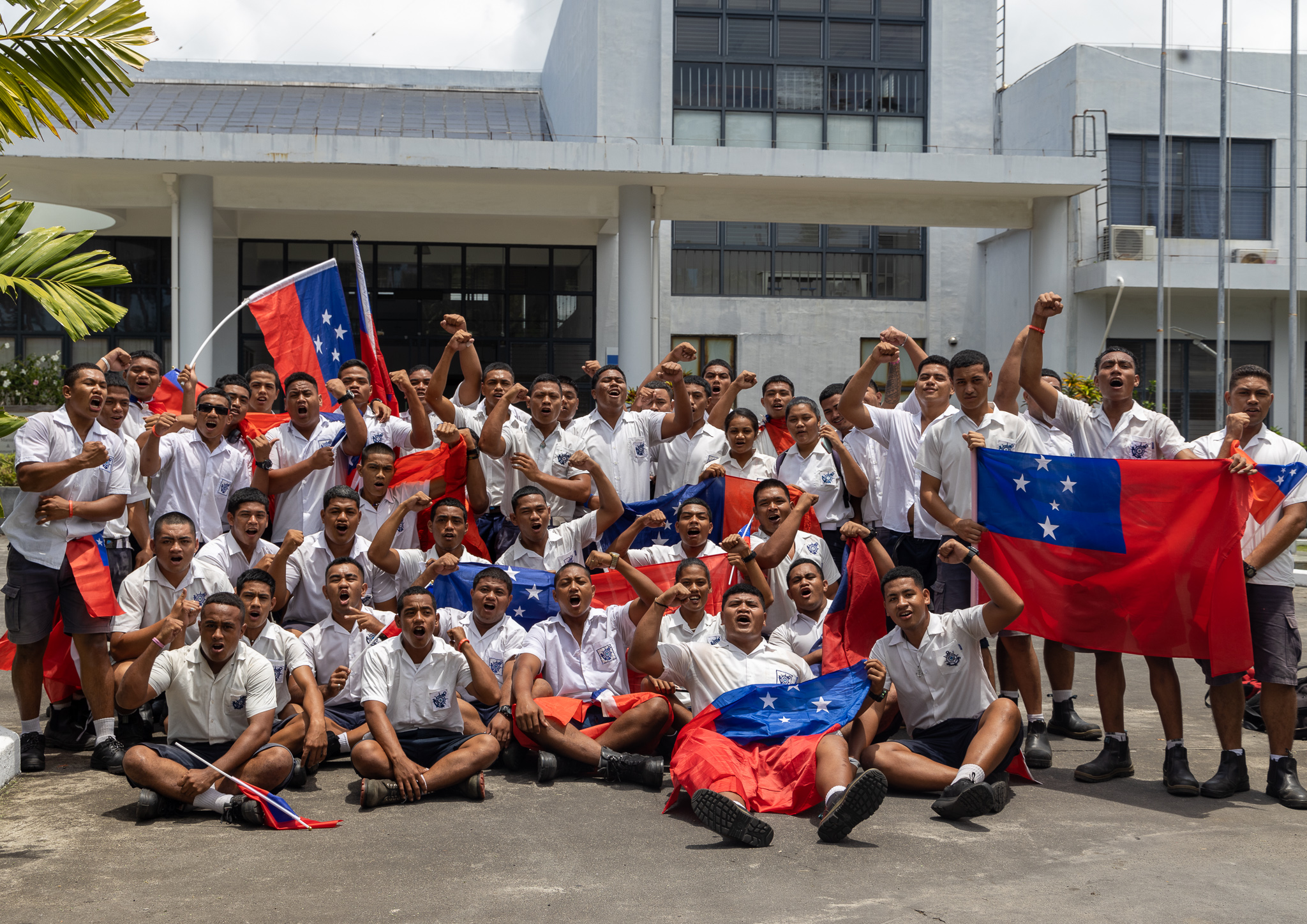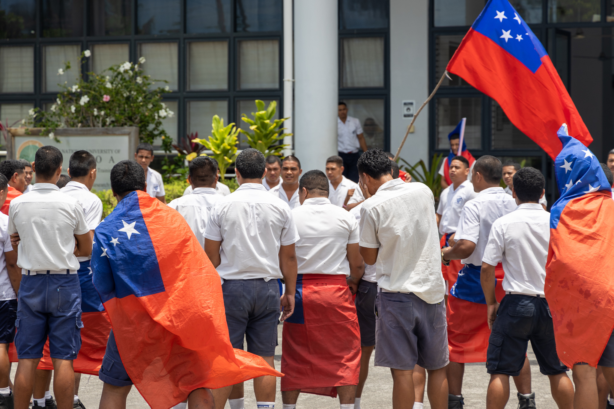 Students at the National University of Samoa’s Maritime School on Friday did a parade to show their support for Toa Samoa and Manu Samoa 15s and 7s squads.