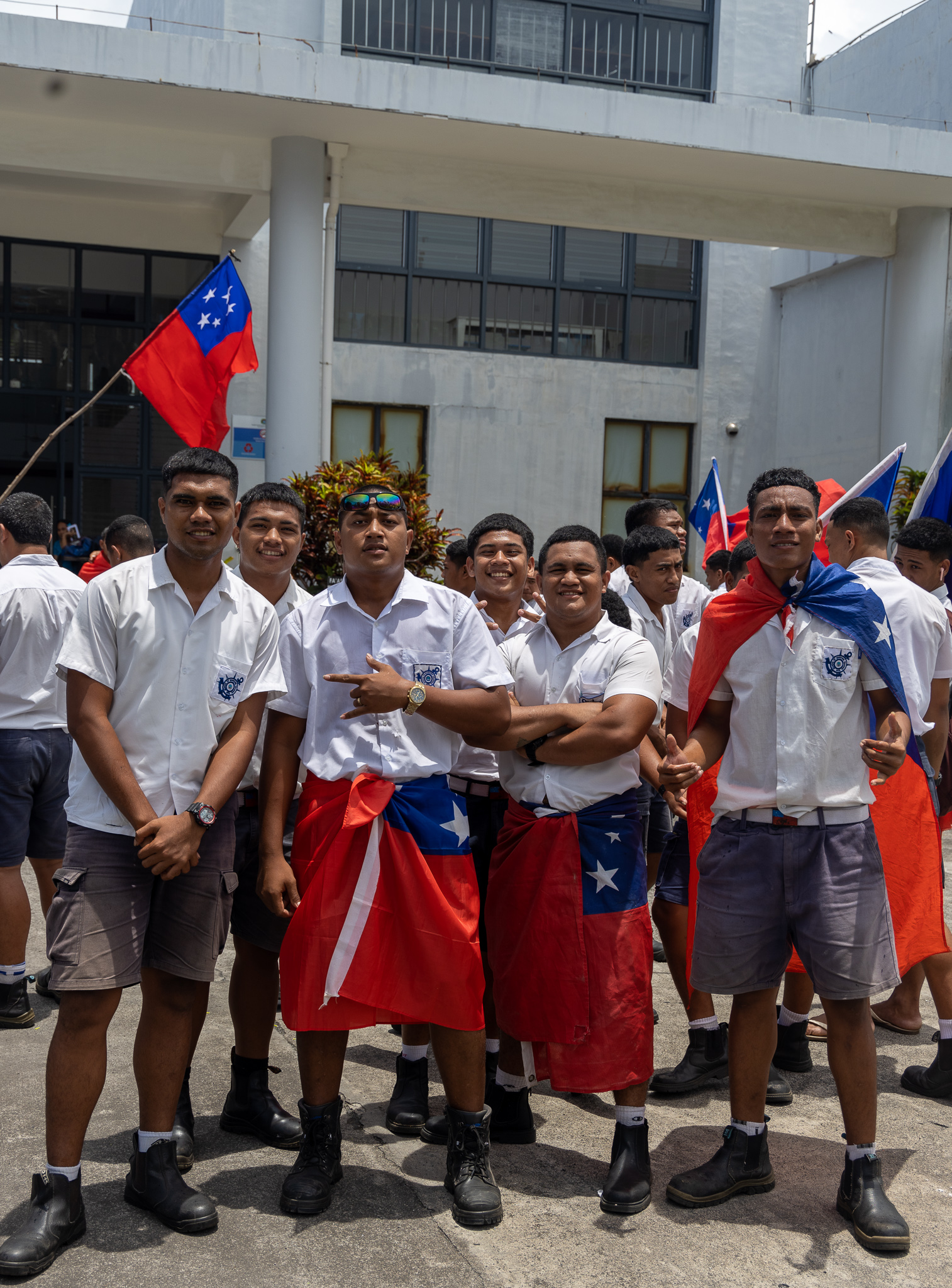 To show their support for the two national teams, the N.U.S. School of Maritime Training held a parade that started in Mulinu’u and ended at the Salelologa market.