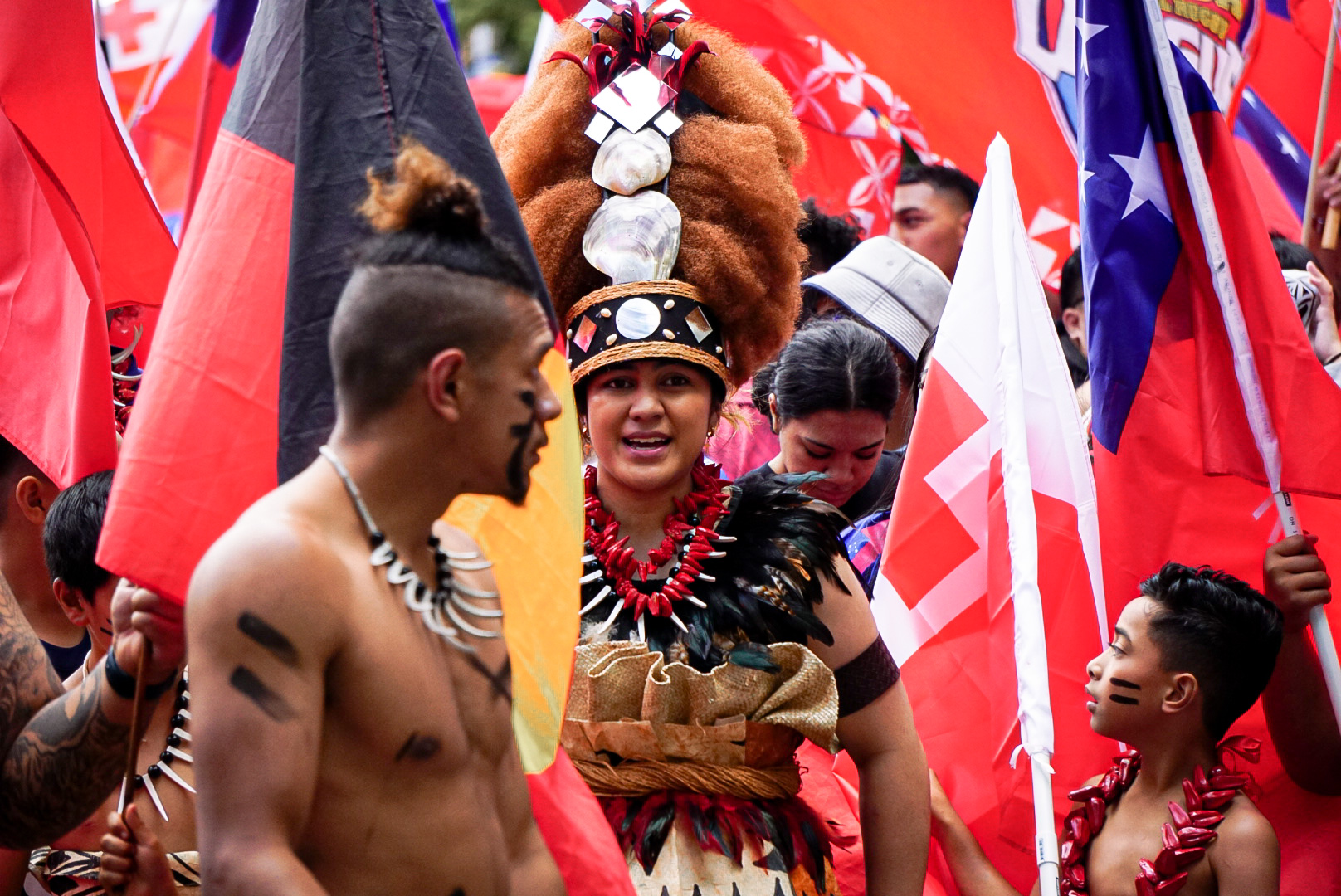 Even a heavy downfall on Saturday afternoon didn't deter the rugby league-mad Samoan and Tongan supporters with the parade continuing as people stood at the back of their trucks to cheer and wave their flags.