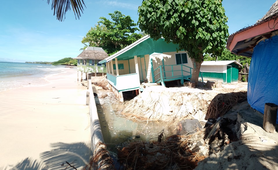 "During the rainy season and bad weather conditions, it's always difficult for people to cross to the other side because of the strong flow from the river and because it was too strong and was raining heavily, the water spread across the island and swept off the sand which made it worse for us. Some of the fales we have on the beach have been destroyed."