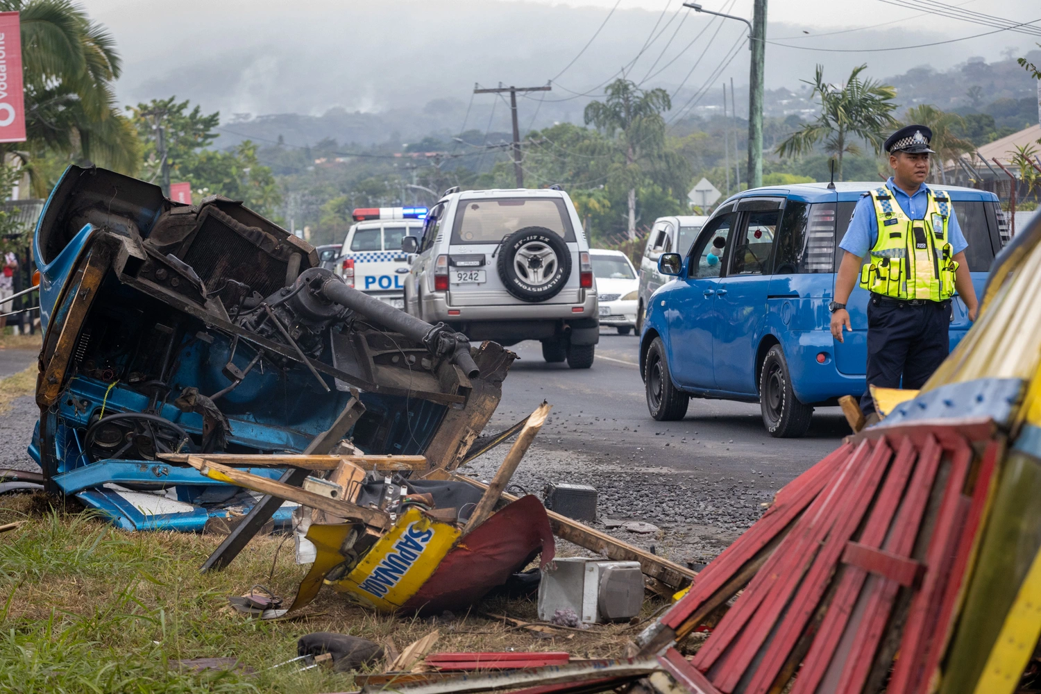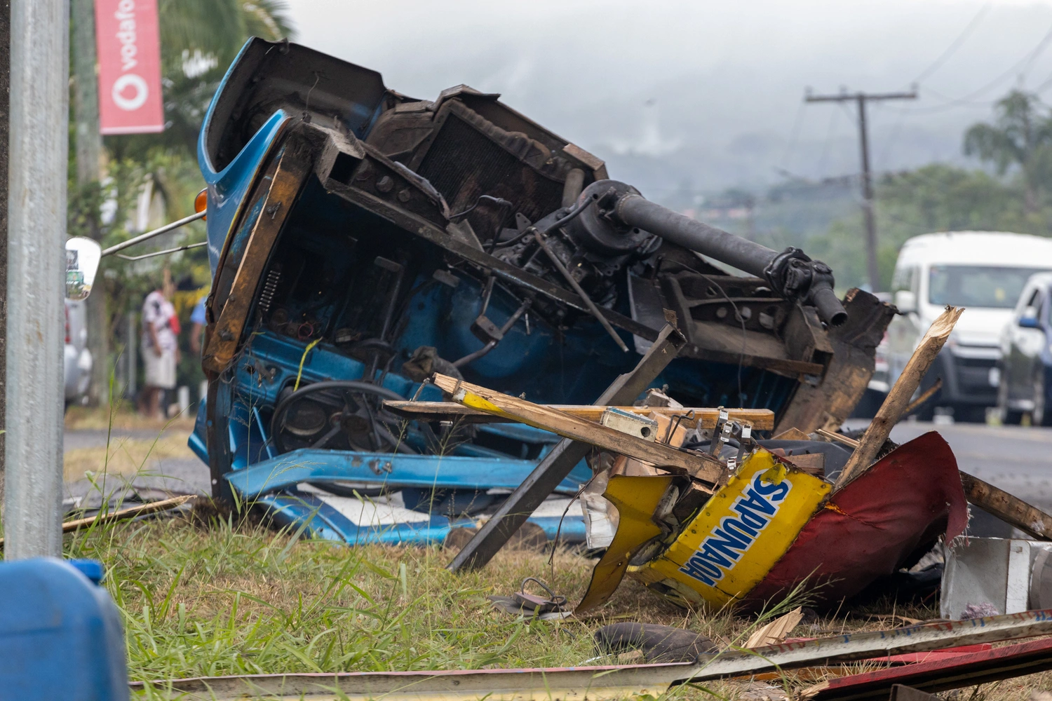 At the scene of the crash at Malifa, pieces of the bus' engine could be seen scattered around, just in front of the Phat Burgers restaurant at Malifa.