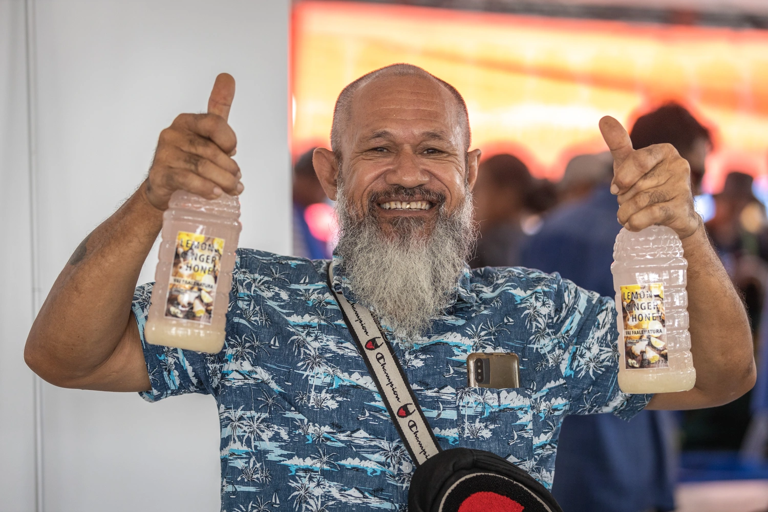 Farmers were given the opportunity to set up exhibition booths to display some of their agricultural products at the event and 62-year-old Sameli Aumua from Sauniatu, Anoamaa set up his stall for lemon, ginger and honey health drinks.