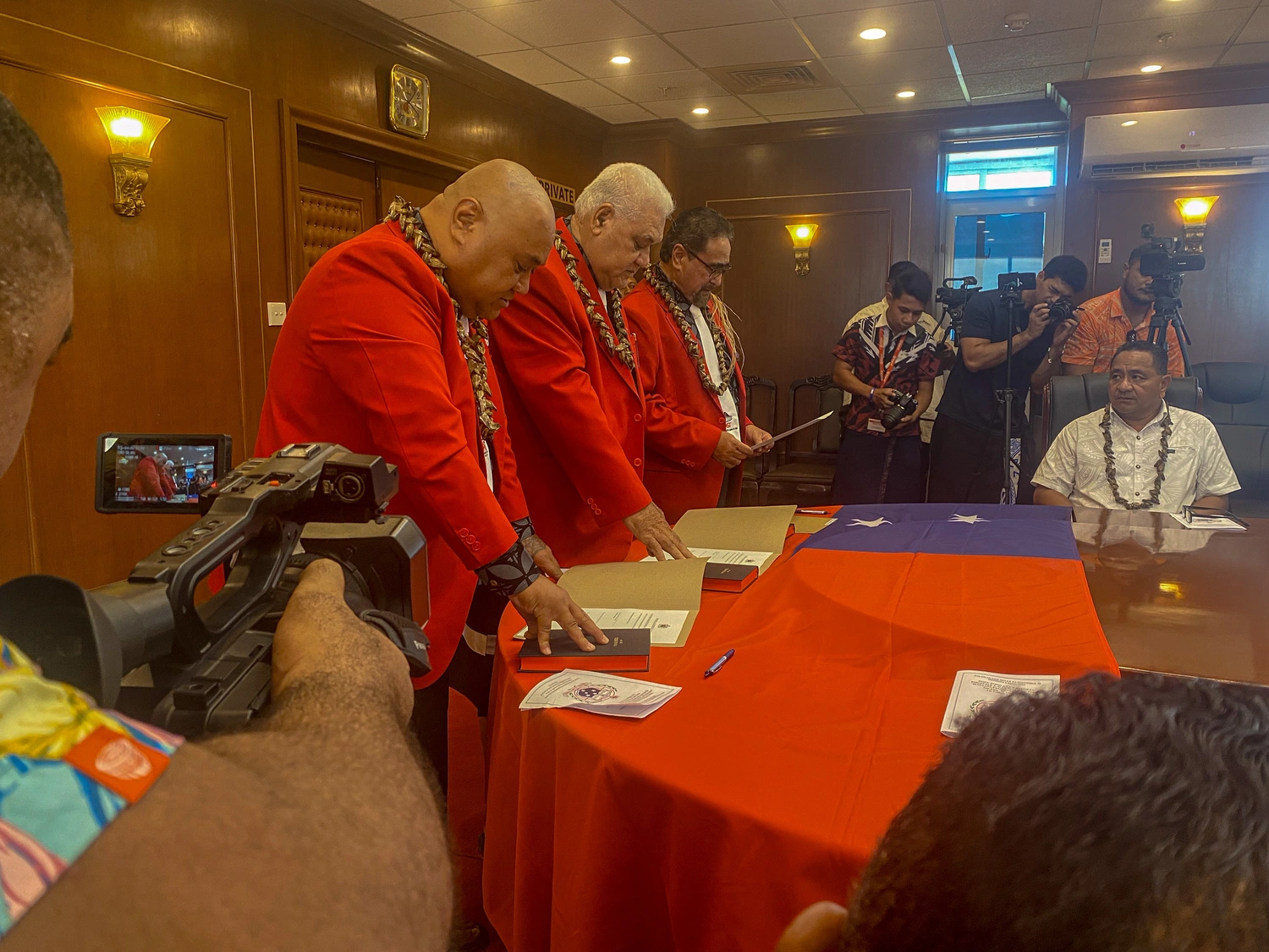 Prime Minister, Fiame Naomi Mata'afa and her cabinet together with a few family members witnessed the swearing-in ceremony.