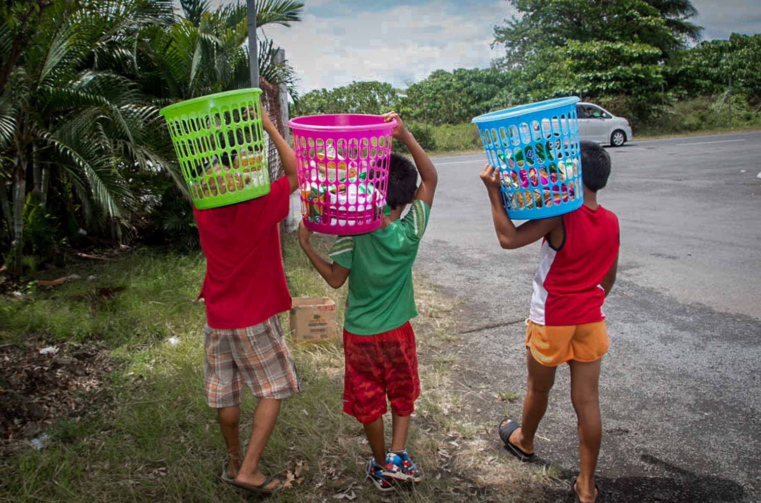 Asked what they want to become when they grow up, one of the boys said he wants to be a policeman. The other two want to be sailors.