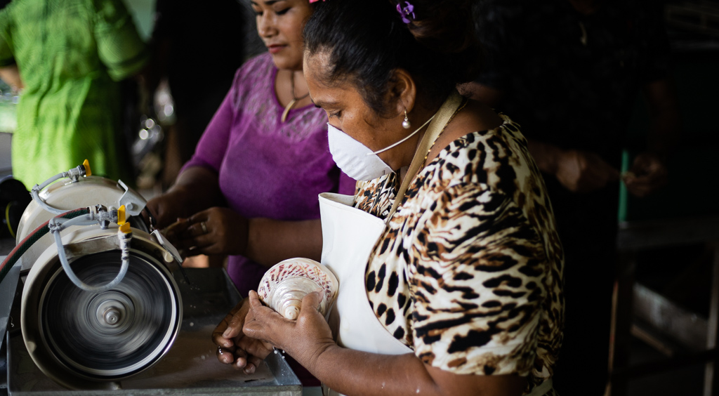 Villagers learn the art of shell crafting