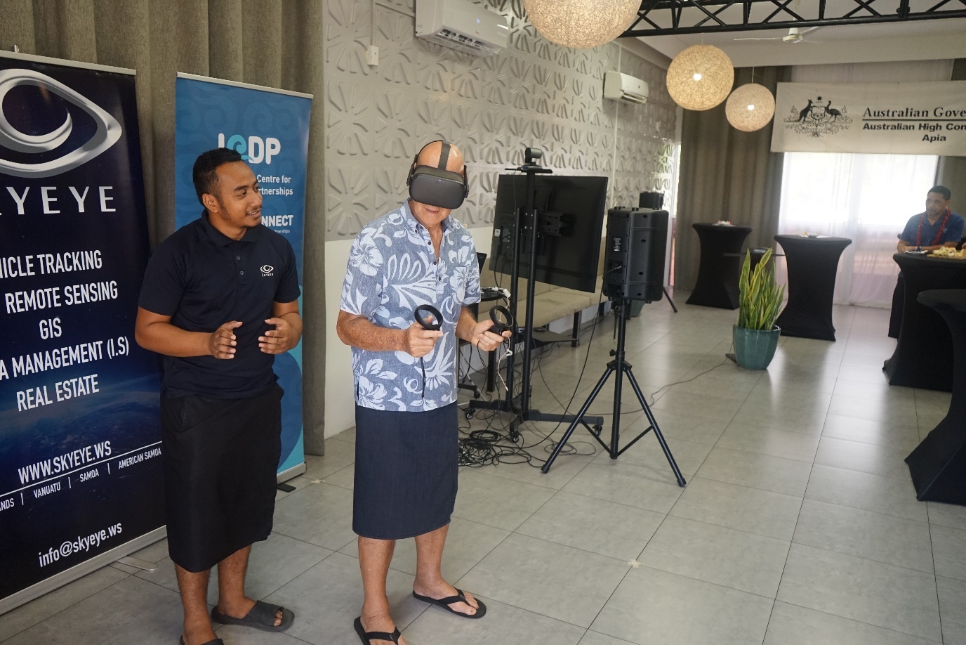 Addressing those attending were Tuatagaloa Joe Annandale; Daniel Stricker, Director DP Immersive (virtual); and Fa'aso'otauloa Sam Saili, Chief Executive Officer of SkyEye.