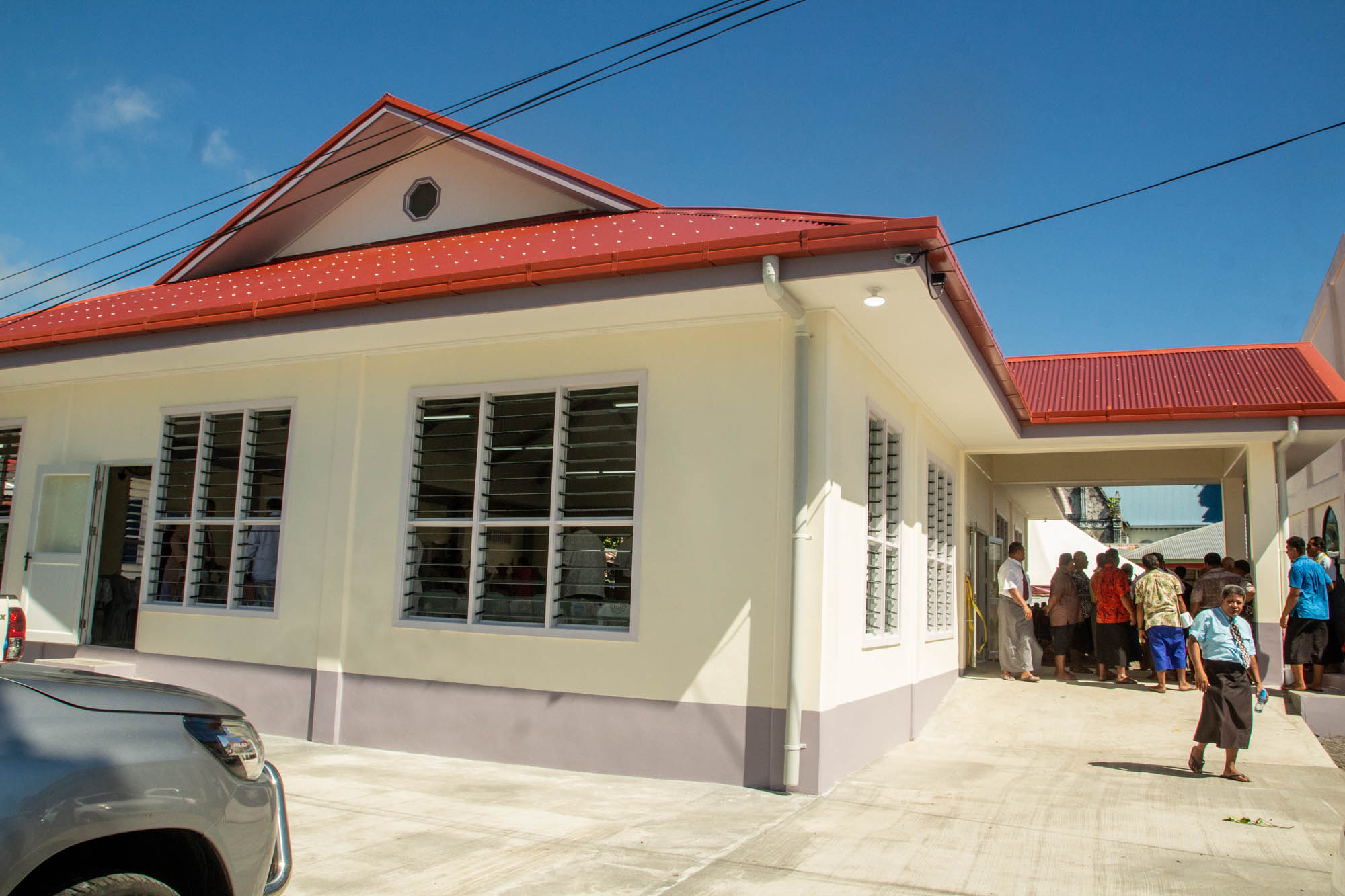The Secretary of the Gagaifomauga District, Reverend Panapa To'o led the service to bless the new hall while Tekimatang Uilelea was given the honor to cut the ribbon to officially open the project.