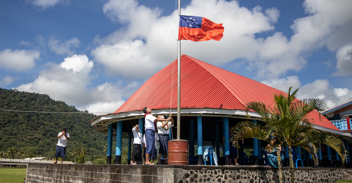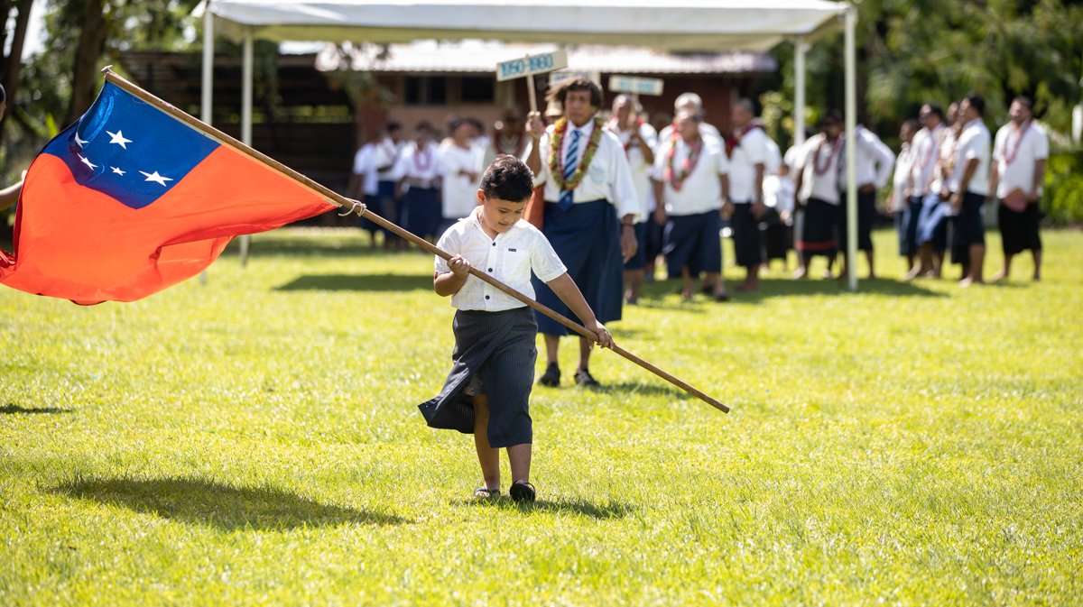 Following the keynote address, the M.B.O.P.A. members made their way to the field to sing Samoa’s national anthem and witness the flag raising ceremony.