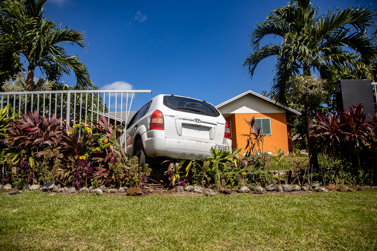 A car crash at Vaitele-fou on Monday evening damaged broke down the fence of a private resident and left the family with a hefty damage bill.