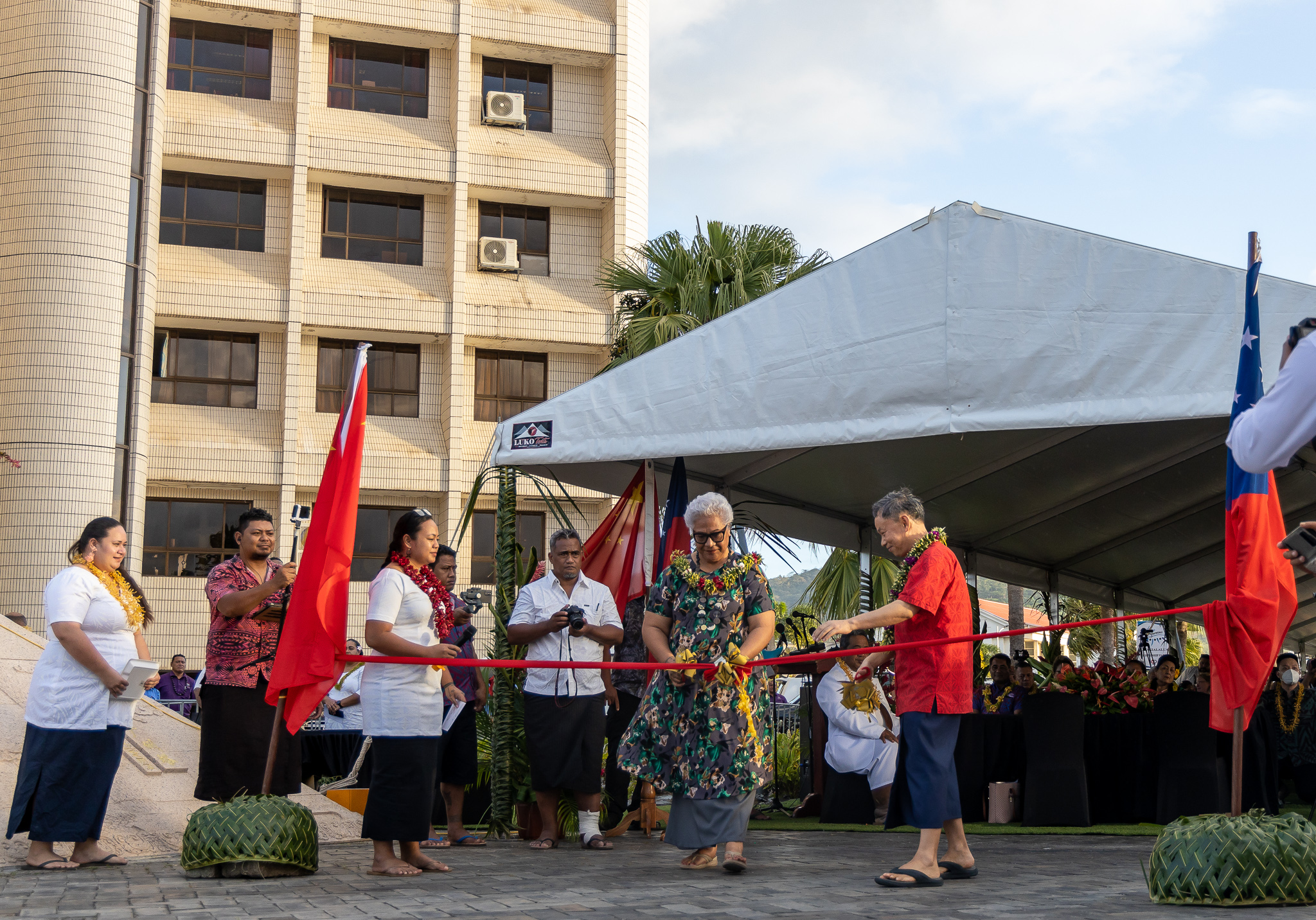 Prime Minister Fiame Naomi Mata'afa and Ambassador Chao Xiaoliang joined Samoa Government officials and Chinese Embassy staff as well as members of the public to witness the official opening.
