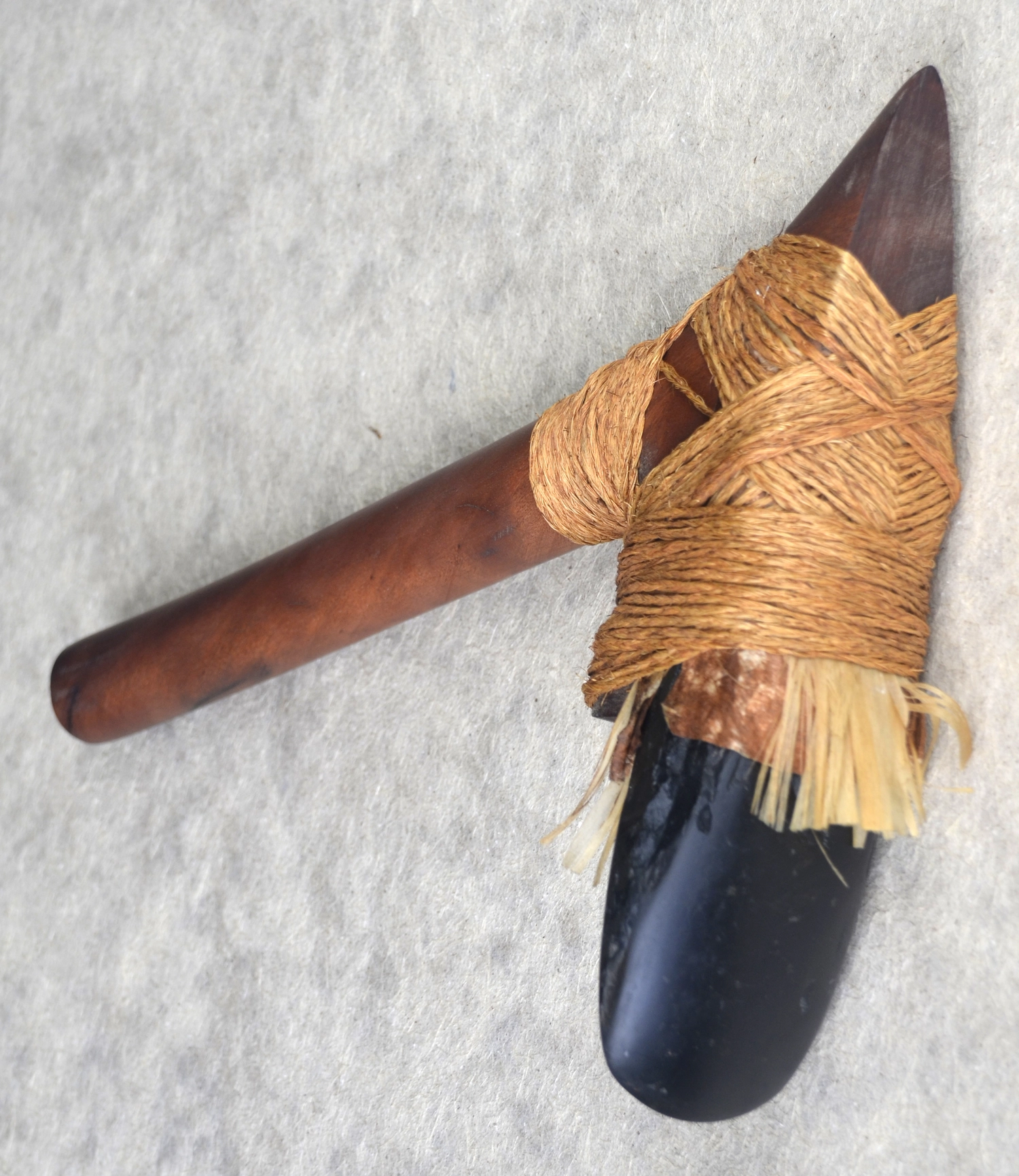 Project Manager Galumalemana Steve Percival, who refers to himself as an experimental archaeologist and documentarian, has been using machines to make stone adzes for a number of years. With the assistance of Professor Moore, he and other participants attending the workshops in May will learn ancient knapping techniques. His most recent hafted adze was partially knapped by hand and was presented as a gift by Afioga Tui Atua Tupua Tamasese Ta’isi Efi to the Great Council of Chiefs during a recent Pacific Traditional Leaders Talanoa.