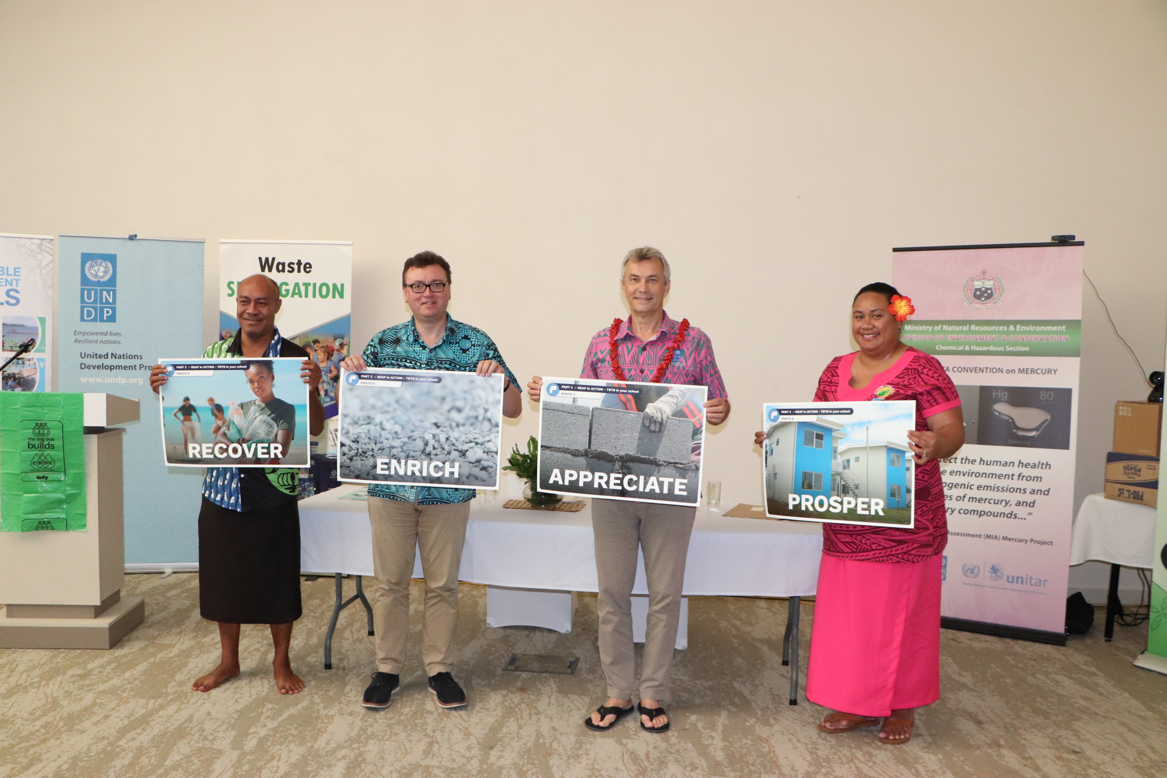 "Identifying and developing innovative solutions, such as the Recover-Enrich-Appreciate-Prosper (REAP) Education and The Bag That Builds (TBTB) Action programmes, to both manage waste sustainably and change consumption patterns, are therefore critical."