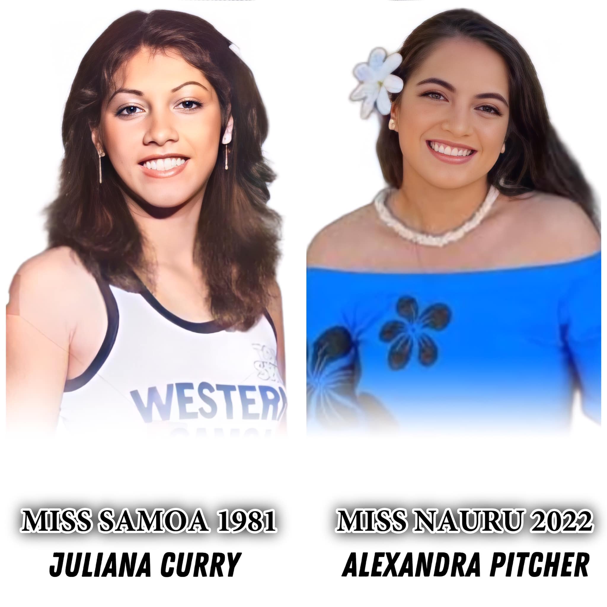 Juliana Curry Pitcher, Miss Samoa in 1981 is the proud mother of the current Miss Nauru who also represented Samoa in the Miss World competition in the same year she held the title.