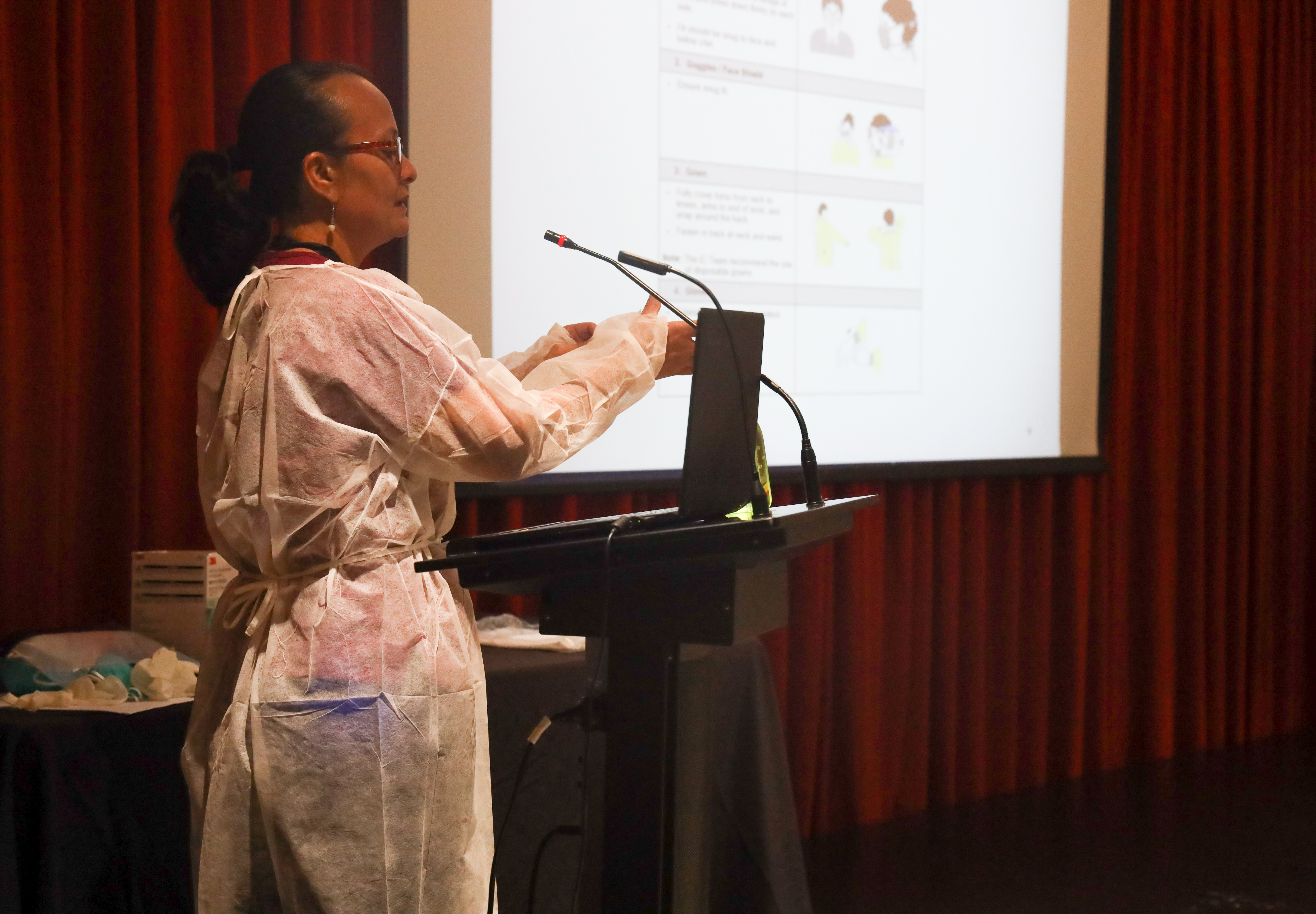 Tupua Tamasese Meaole National Hospital (T.T.M.) infection control officer, Joyce Levaai, gave a presentation at the workshop on how to maintain hygiene and the proper way to wash your hands to avoid infection.