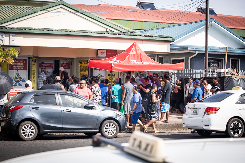 Western Union customer, Vaifou Telea, told Samoa Observer that he was there to collect money sent by relatives living abroad and the service has been slow as only up to five customers are allowed in at one time.