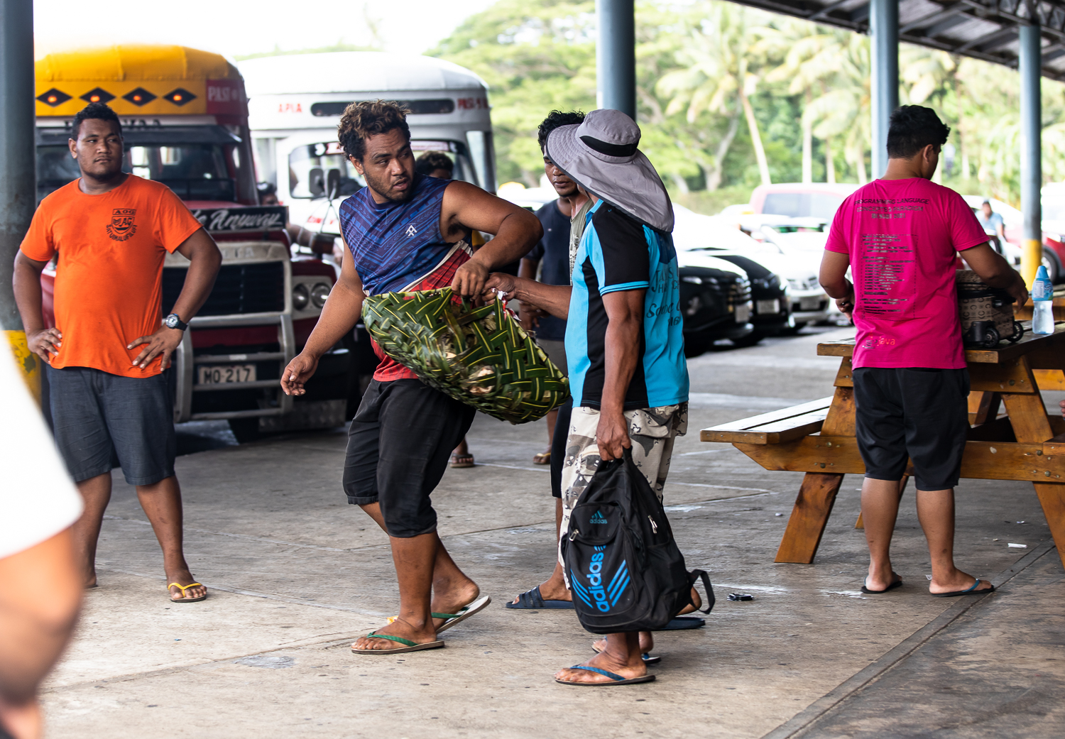 The Samoa Shipping Corporation (S.S.C.) compound was crowded on Wednesday with vehicles with many more cars lining outside of the gates all the way up to the gas station in Salelologa.