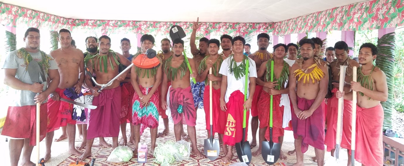 A group of untitled men of Lona Fagaloa, commonly referred to as the Aumaga, have been equipped with tools and equipment to better serve their village council and community.