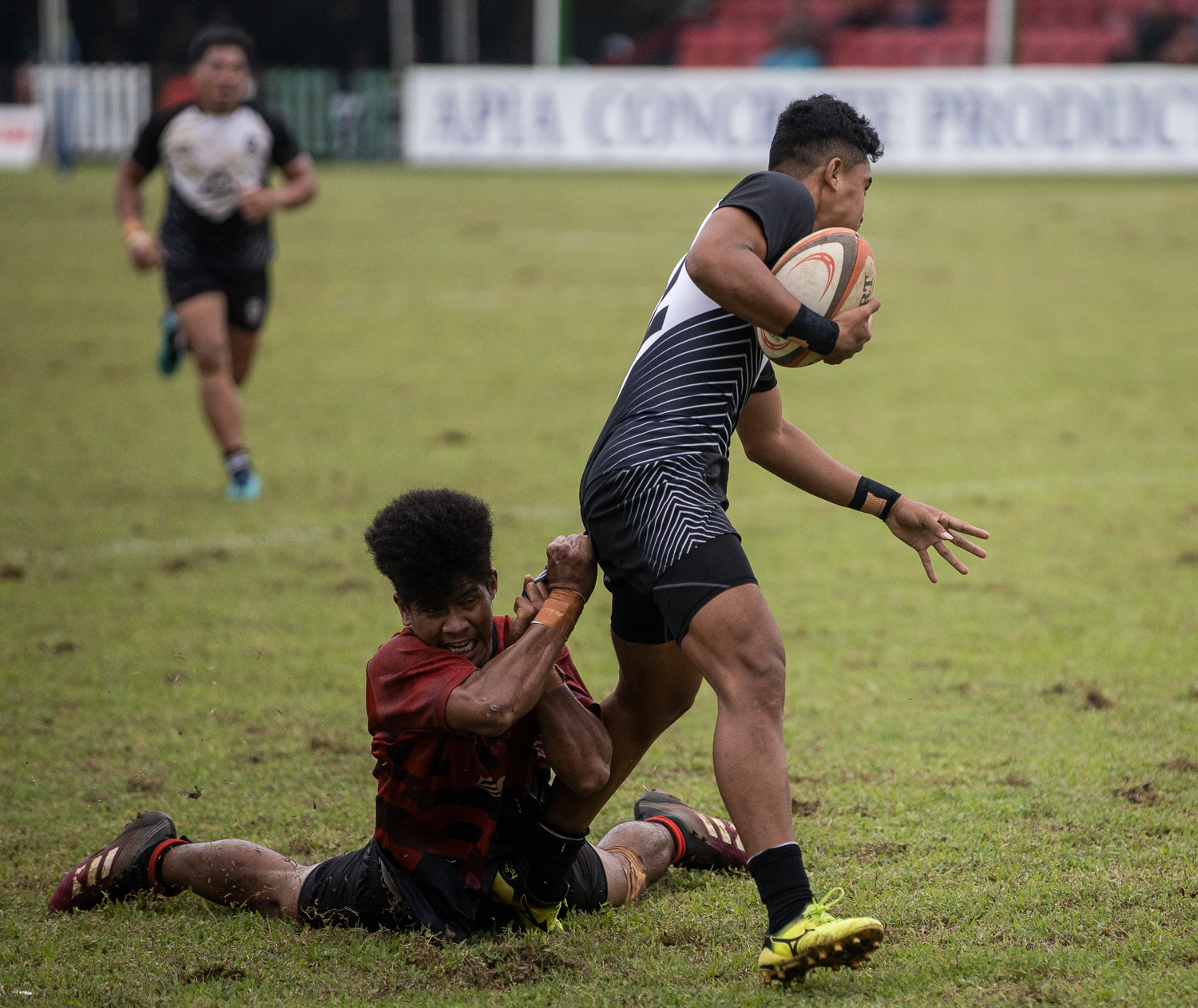 Keponi Paul broke away for Achieve Your Impossible, and then Manu Laqai scored right on halftime to give the Fijians a 7-5 lead.